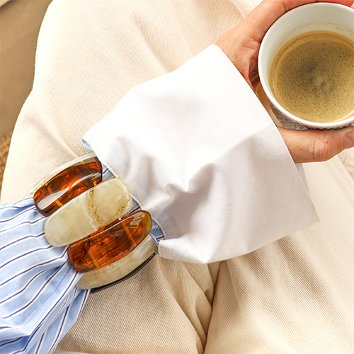 Möchten Sie Ihre Kundinnen mit auffälligen Designs begeistern? Diese neue Serie aus Resin- und Metall-Armschmuck ist bold, farbenfroh und absolut im Trend. Ideal, um Armreifen, -bänder und -ringe zu einzigartigen Eyecatchern für Arm-Partys, die Aufmerksamkeit garantiert, zu kombinieren.