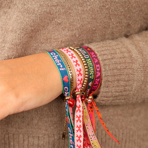 BY31® Schmuckband mit Text "Chéri" Dark blue-light pink-red-green