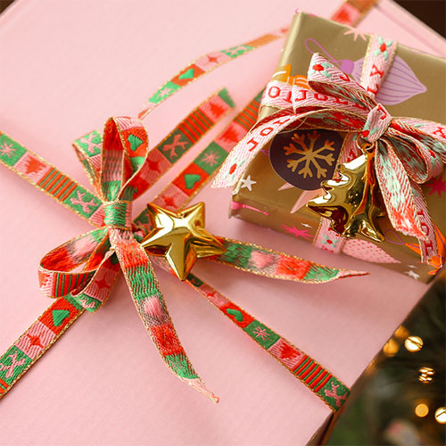 BY31® Schmuckband mit Text Weihnachten Light pink-red-green-gold