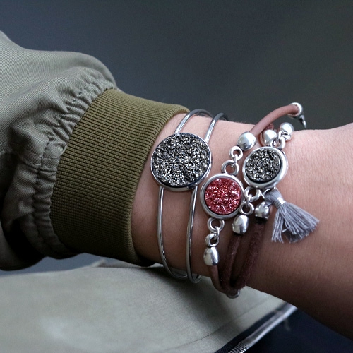 Geben Sie Ihren eigenen Dreh an einen Glamour Look und verwenden rund Leder DQ um den glitzernden Goldstein Cabochon noch mehr Akzent zu geben. Verwend prachtvolles Zubehör und Fassungen aus DQ Metall z.B. unsere praktischen Endkappen um Ihren Schmuck professionell abzurunden. Verwend hippe Perlen in festlichen Farben um Ihr Armband einem schönen Kontrast zu geben. Machen Sie z.B. auch ein super Geschenk indem Sie einen Goldstein Cabochon von Polaris Elements an Ihr Armband tun mit einer Fassung für 20 mm Cabochon. Für all Ihre Schmuck Geschenke haben wir auch schöne Verpackungen, z.B. unsere hübschen Schmuck Beutel aus Organza!