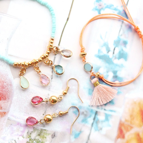 Mit diesen zierlichen Armbändern machen Sie jede Armparty komplett! Für diesen Schmuck haben wir unsere schönsten Reihmaterialien, Perlen und Schmuckzubehör ausgesucht. Wir verwendeten kleine sommerliche Rocailles, gefärbtes Elastik und Macramé Band als Basis. Diese Artikel passen super zu den prachtvollen Kristallglas Anhängern und Zwischenstücken. Diese Produkte formen eine Einheit, was dafür sorgt, dass die Kristallglas Anhänger extra gut zum vorschein kommen.