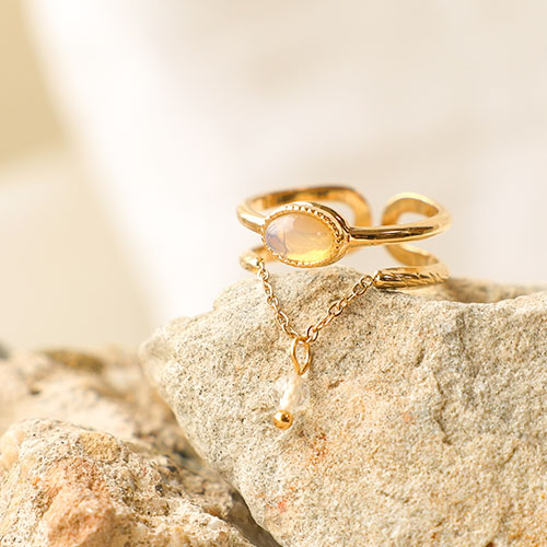 • Ringe aus Stainless Steel - Rostfreiem Stahl mit Naturstein Gold-milky white