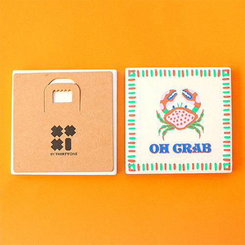 BY31® Deko-Fliese mit Spruch "Oh crab" Light peach-red-green-blue