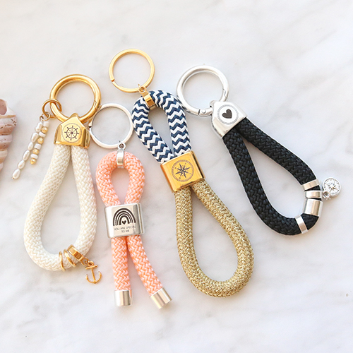 Möchten Sie Ihren eigenen Schlüsselanhängern mit Segeltau gestalten? Wählen Sie zunächst einen Schieber oder ein Zwischenstück mit Gravur und Ihrem Lieblingssegeltau. Es gibt zwei Kabellängen, die genau die richtige Grösse haben und die Sie sofort verwenden können. Bestimmen Sie die Länge lieber selbst? Wählen Sie dann die längste Schnur und schneiden Sie sie selbst zu. Sie können Ringe oder Anhänger mit einer Öse an der Kordel befestigen. Daran können Sie dann ganz einfach einen schönen Anhänger hängen. Sie kleben dann einfach das Segeltau in einen Schieber oder eine Endkappe. Hier können Sie jetzt auch exklusiv nach den Schiebern und Endkappen in Gold suchen! Möchten Sie Ihrem Schlüsselanhänger eine zusätzliche Note verleihen? Verwenden Sie dann einen Nietstift und Süsswasserperlen oder DQ Metall Perlen um einen schönen Anhänger herzustellen. Viel Glück!
