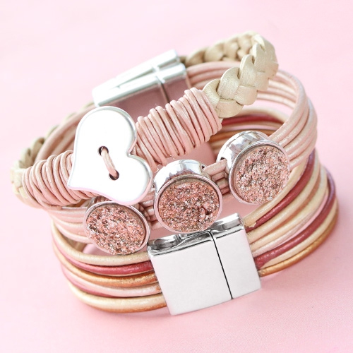 StartseiteInspirationSchmucksetsLeder Armband mit natürlichen zarten Farben