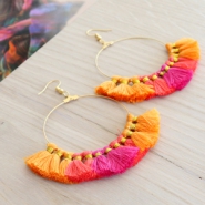 Diese schönen Ohrringe sind absolut Ibiza! Wollen Sie diese auch machen? Verwenden Sie dann unsere Creolen aus DQ Metall als Basis. Schieben Sie die Quasten um den Draht der Creolen nachdem Sie die Binderinge der Quasten entfernt haben. Sie können aus verschiedenen Ohrringen und Quasten wählen und den gewünschten Effekt kreieren. Arbeiten Sie mit auffallenden Farbkombinationen und schönen Kontrasten. Wenn Sie XXL Quasten wählen, können Sie die Quasten in eine schöne runde Form schneiden. In unserem DIY Video finden Sie eine detaillierte Erklärung, wie Sie die Ohrringe machen können. Machen Sie diese Fringe Ohrringe mit Creolen und Quasten gross und auffallend oder machen Sie sie klein und fein?