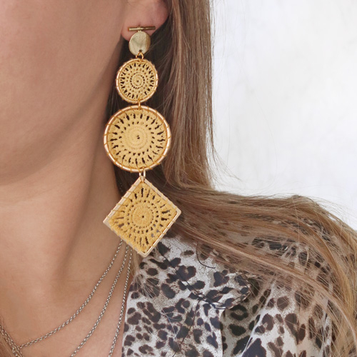 Diese Ohrringe in Soutache Stil sind ein Muss zum Frühling/Sommer 2019. Sie sind dazu noch sehr einfach zu machen. Sie befestigen die gewebten/Rattan Anhänger an einem Ohrstecker und Ihr Ohrring ist fertig. Die gewebten Anhänger sind auch schön in Kombination mit unseren Resin Anhängern. Die kleinen runden Anhänger sind perfekt auf einem Ohrstecker. Befestigen Sie hier den gewebten Anhänger dran und Sie haben zwei super Trends in einem Ohrring.
