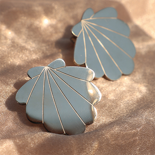 • Ohrringe / Ohrstecker aus Stainless Steel - Rostfreiem Stahl Muschel Silver