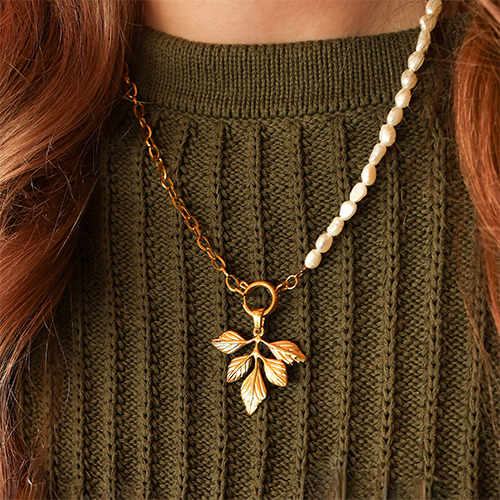 Stainless Steel - Rostfrei Stahl Anhänger Blatt Gold