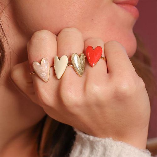 Erleben Sie den Zauber unserer neuen Serie: Edelstahlringe mit Emailleherz in leuchtenden Farben wie Rosa, Rot, Weiß und Gold. Ideal, um Ihre Kollektion für den Valentinstag zu ergänzen. Lassen Sie sich inspirieren und entscheiden Sie sich für das perfekte Symbol der Liebe.