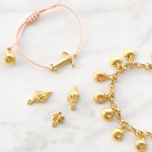 Mit dieser Sommer Inspiration sehen Sie sich schon mit einem Cocktail am Strand! Diese Sommer Perlen und Anhänger aus dieser Kollektion wie die Anker und die Muscheln sind super schön im Sommerschmuck. Kombinieren Sie die goldenen DQ Metall mit peach und mintgrünen Farben für eine Sommereffekt! Ein Armband aus den Ankerperlen und Macramé Draht in peach Farbe (37889) ist zum Beispiel ein sehr schöner Sommer Artikel.
