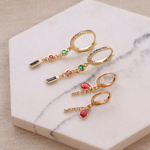 Zirkonia Rainbow Creolen mit Öse Gold