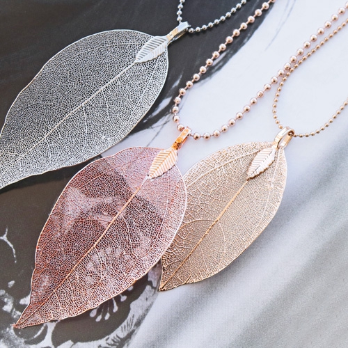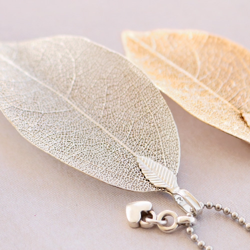 Feine Ketten verziert mit Blatt Anhängern aus echten metallbeschichteten Blättern