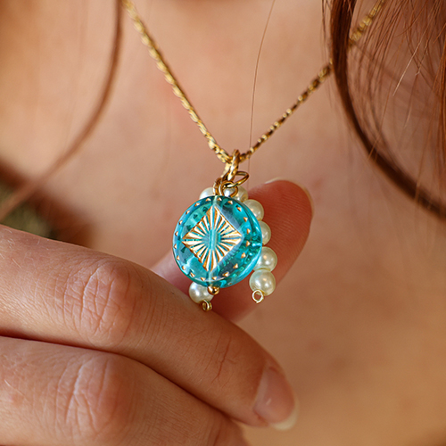 Acrylperlen Rund mit Viereck Turquoise blue-gold