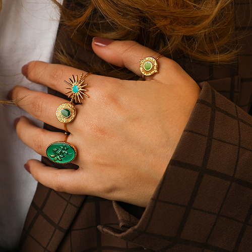 Ringe aus Stainless Steel - Rostfreiem Stahl Enamel Rund Gold-light green