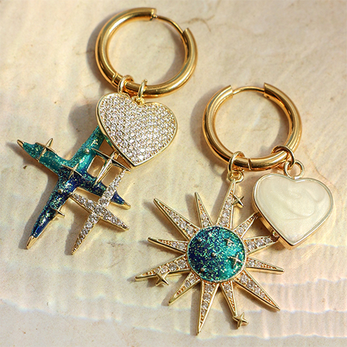 • Brass TQ Metall Anhänger Zirkonia Stern Gold-dark aqua green-blue