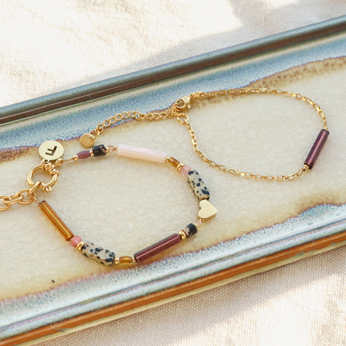 Naturstein Perlen Dalmatiner Jaspis Tubes Greige black