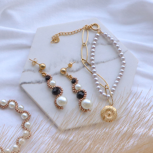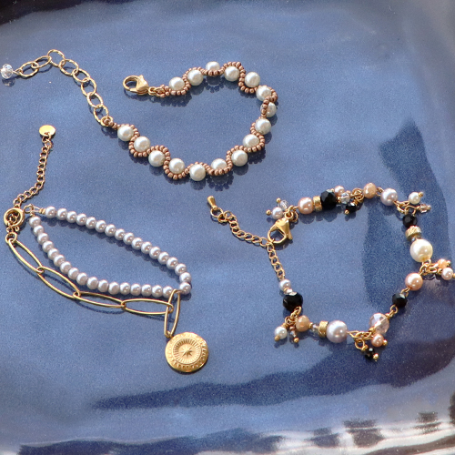 Sie lieben Glasperlen? Tolle Armbänder gestalten Sie, indem Sie eine schöne große Perle auf einen Kettelstift aufziehen und zu beiden Seiten eine Öse legen. Kreieren Sie mehrere dieser Zwischenstücke, die Sie dann mit einem Bindering verbinden. An die Binderinge hängen Sie anschließend kleinere Perlen und gestalten mithilfe eines Nietstiftes einen Anhänger. Oder entwerfen Sie Ohrringe mit Glasperlen in vier Größen in Kombination mit Miyuki-Beadingkordel und Rocailles-Perlen. Nach dem gleichen Muster gestalten Sie auch Armbänder oder Ketten mit gleich großen Glasperlen.