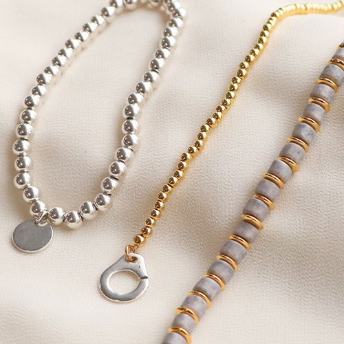 Auf der Suche nach Ideen für Ihre Schmuckkollektion mit Zubehör aus Metall in Designerqualität? Wir zeigen Ihnen, wie Sie mit dem Zubehör aus Metall in Designerqualität eleganten Schmuck gestalten. Wie wäre es z. B. mit einem Freundschaftsarmband mit einer groben Jasseron-Kette und einem angesagten Anhänger im Handschellen-Design? Befestigen Sie dazu den Anhänger einfach mithilfe von Binderingen an der Jasseron-Kette. Oder entwerfen Sie ein Armband-Set, für das Sie verschiedene Armbänder in einem Verschluss zusammenführen. Für einen angesagten Look kombinieren Sie die Jasseron-Ketten mit Jade-Perlen, Perlen in Designerqualität und Disc-Perlen. Auch Chandelier-Ohrringe designen Sie ganz einfach mit einem Ohrstecker aus Metall in Designerqualität, Perlen sowie Kettelstiften, mit denen Sie die Perlen am Ohrring befestigen.