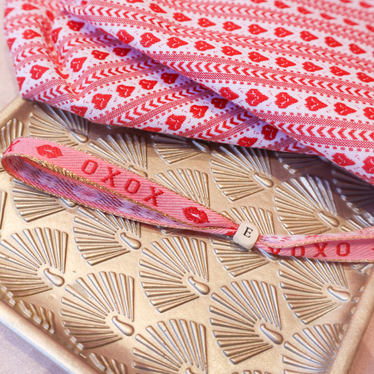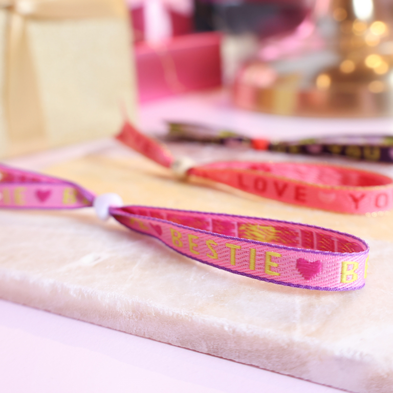 Schmuckband mit Text Herzen Fuchsia-light pink