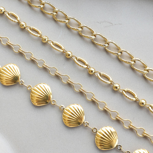 Stainless Steel - Rostfrei Stahl Schmuckzubehör Gliederkette Muschel Gold