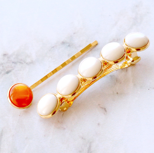 Haarspangen Metall Fassungen für 5 Cabochons 12mm Gold