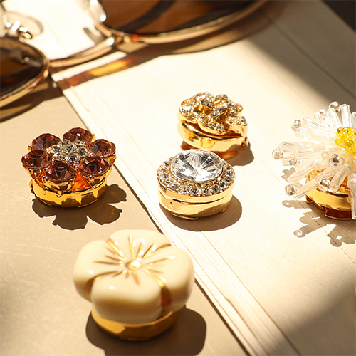 • Eco-brass® (nachaltiges Messing) Knopfabdeckung Zirkonia Blume Gold-vintage pink-crystal