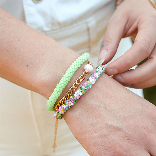 Diese faszinierenden Facett-Ohrring-Komponenten und stylischen Armbänder sind ein absolutes Must-have für Ihre Sommerkollektion! Ob Sie die Anhänger direkt an den Ohrringen anbringen oder längere Ohrringe mit einem Zwischenstück gestalten möchten, Ihrer Kreativität sind keine Grenzen gesetzt. Lassen Sie sich von den vorgefertigten Armbändern inspirieren und kreieren Sie trendige Sets, die alle Blicke auf sich ziehen.