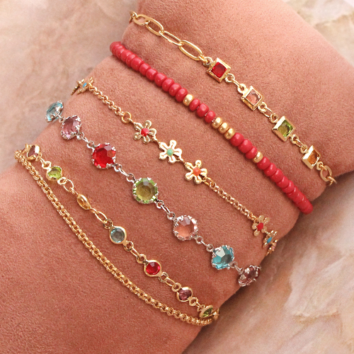 Brass TQ Metall Gliederkette Blumen Gold-multicolour