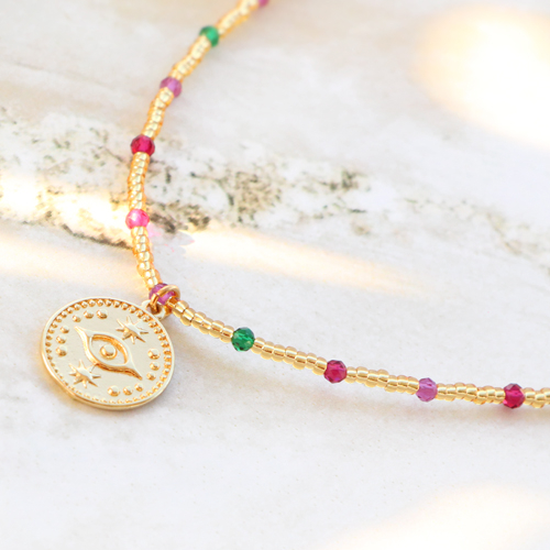 Brass TQ Metall Anhänger Herz Auge der Vorsehung Strass Gold