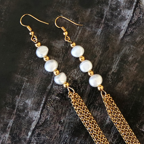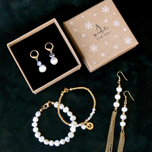 Die Herstellung von Schmuck mit Süsswasserperlen muss überhaupt nicht schwierig sein. Mit dieser neuesten Kollektion von Süsswasserperlen Nugget haben wir einfache, aber sehr stylische Armbänder und Ohrringe hergestellt. Sie können dies ganz einfach tun, indem Sie die Süsswasserperlen mit goldfarbenen Schmuckteilen wie Ketten, Kettelstifte, Metall Perlen DQ und wunderschönen goldfarbenen Karabiner Verschlüsse kombinieren. Die Kombination des luxuriösen Süsswasserperlen Nuggets mit den goldfarbenen Gegenständen schafft einen festlichen Look, den man sich für die kommenden Feiertage natürlich nicht entgehen lassen sollte. Viel Glück!