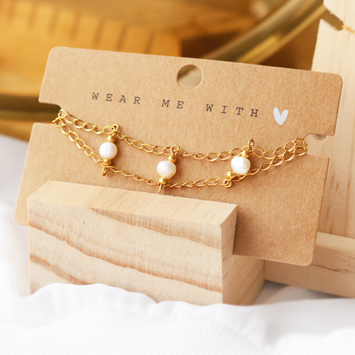 Machen Sie Schmuck mit der neuen Kollektion von Süßwasserperlen. Die größeren Süßwasserperlen können perfekt als Anhänger verwendet werden, indem man einfach einen Nietstifte durch sie hindurch steckt. Die kleineren Perlen eignen sich auch hervorragend für die Herstellung von trendigem Schmuck. Im Handumdrehen können Sie ein Armband mit Jasseron herstellen. Für die Herstellung eines Sets könnten Sie die gleichen Materialien für die Herstellung von Ohrringen verwenden. Dafür können Sie unsere Ohrringteile verwenden. Für das Auftragen von zusätzlicher Farbe könnte man an eine Natursteinperlen denken. Präsentieren Sie Ihren Schmuck auf unseren neuen Displays und Ihr Schmuck erhält die Aufmerksamkeit, die er verdient.
