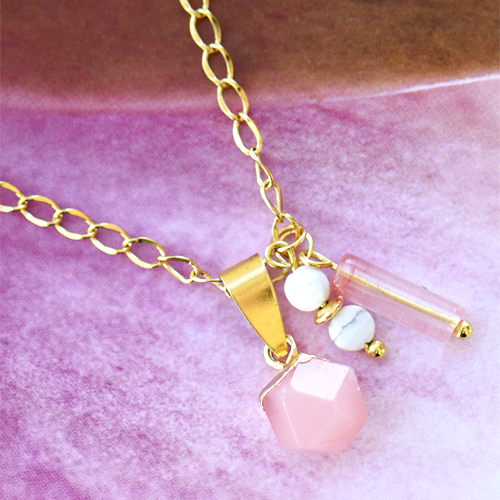Naturstein Anhänger Hexagon Light pink-gold