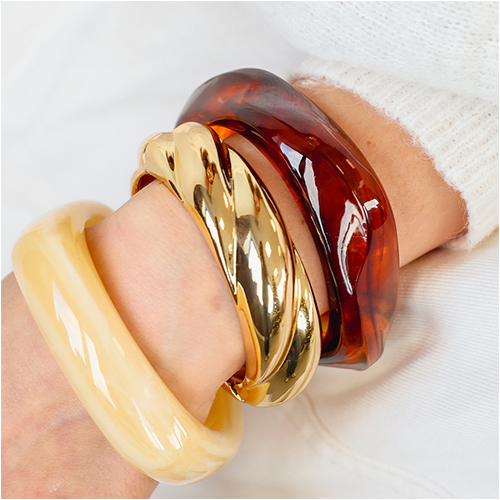 Unsere Bestseller sind wieder da! Neue Resinarmbänder in warmen Farben und trendigen Formen. Ausdrucksstark, farbenfroh und perfekt kombinierbar mit unseren Metallarmbändern. Die ideale Basis für moderne, aufmerksamkeitsstarke Schmuckkollektionen.