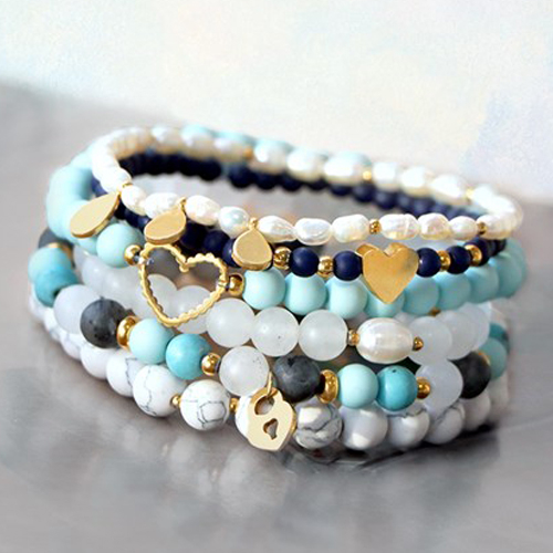 Natürlich möchten Sie das neue Jahr richtig beginnen. Überraschen Sie Ihre Kunden mit einer neuen Kollektion und fordern Sie sich heraus, neuen Schmuck zu entwerfen. In diesem Schmuckinspiration werden Acrylperlen, Natursteinperlen, Süßwasserperlen und natürlich Edelstahlperlen und Abstandshalter kombiniert. Sie passen perfekt zusammen und können in unendlichen Möglichkeiten eingesetzt werden. Vergessen Sie nicht die beliebten Mix & Match DQ-Schlüsselanhänger für Ihre neue Kollektion! Einfach nach Ihrem Geschmack herzustellen und zusammenzustellen.