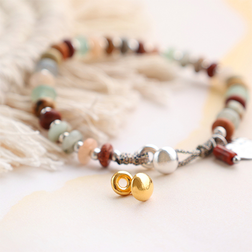 Mit diesen Teilen entwerfen Sie spielerisch Schmuckstücke, die zu einem natürlichen und bodenständigen Stil passen! Wählen Sie ein elastisches Band Ibiza, das gut zu den Schiebern aus dieser Kollektion passt. Damit können Sie Armbänder kreieren, die Sie mit einer eleganten Smart Stopperperle schließen. Oder fädeln Sie ein Armband auf Makramee-Band im Metallic-Look und wählen Sie verschiedenfarbige Natursteinperlen, die Sie mit DQ-Metallperlen abwechseln. Die DQ-"Sicherheitsnadel" lässt sich wunderbar als Blickfang in eine Gliederkette einbinden.