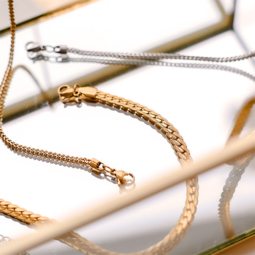 Suchen Sie nach bereits fertigen Armbändern und Halsketten, um Ihre Schmuckkollektion zu ergänzen? Dann ist diese Serie aus Edelstahlschmuck perfekt für Sie! In den Farben Gold und Silber erhältlich, bieten diese Schmuckstücke eine ideale Ergänzung zu Ihren selbstgemachten Kreationen.