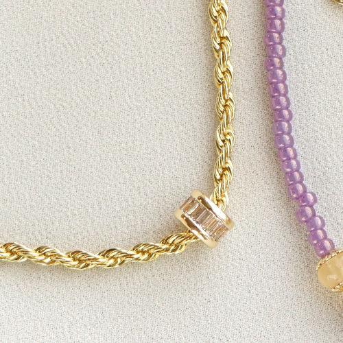 Diese kleinen Zirkonia-Anhänger sehen an einer schönen Jasseron-Kette einfach umwerfend aus! Egal ob Sie sie in einer Hals- oder einer Körperkette einarbeiten. Fertigen Sie mehrere Halsketten an, die zusammen getragen werden können, denn Layering liegt nach wie vor im Trend! Entwerfen Sie zum Beispiel eine Halskette mit facettierten Natursteinperlen und einer Zirkonia-Perle in der Mitte. Um diese Perle an ihrem Platz zu halten und das Loch zum Auffädeln zu verbergen, können Sie z. B. eine C.U.S® Message Beads Endkappe verwenden.