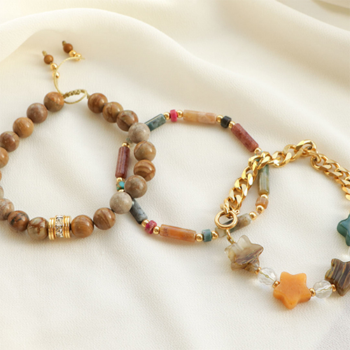 • Naturstein Perlen Achat Tubes Multicolour green pink