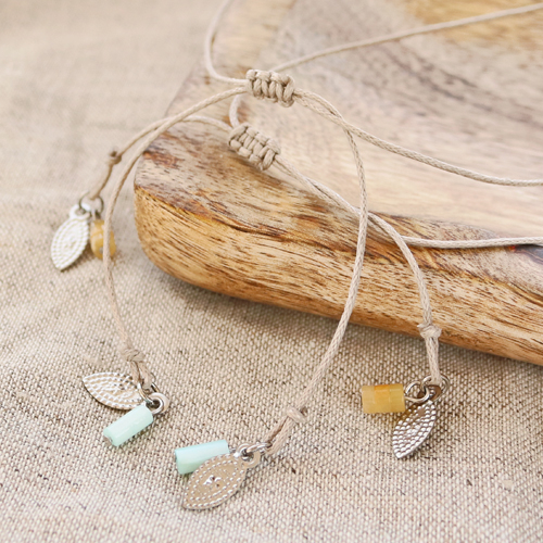 Reihen Sie dann Miyuki oder Natursteinperlen zusammen mit einer Resin Kauri Muscheln über Makramé Band und machen Sie am Ende einen Schiebeknoten. Sie können auch einen schönen Anhänger oder eine Perle an die Enden der Kette hängen. Möchten Sie einen kompletten Satz erstellen? Dann reihen Sie eine Kette aus Natursteinperlen in passenden Farben auf Elastik.