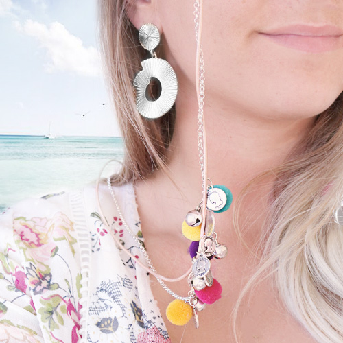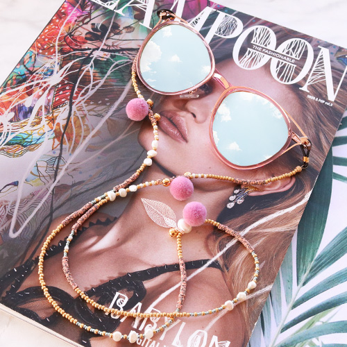 Mit diesen Sonnenbrillen sind Sie bereit für den Sommer, lassen Sie die Sonne kommen! Wir verwendeten unterschiedliche Reihmaterialien und Techniken, um diese Kordeln zu entwerfen. Sie können Schmuckzubehör wie Kauri Msucheln, Macramé Draht, Pompoms, Süßwasserperlen, Katsuki Perlen, DQ Metall und Rocailles sehen! Dieses Inspirationsset ist vielseitig einsetzbar.