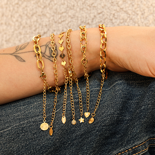 Stainless Steel - Rostfrei Stahl Schmuckzubehör Gliederkette Muschel Gold