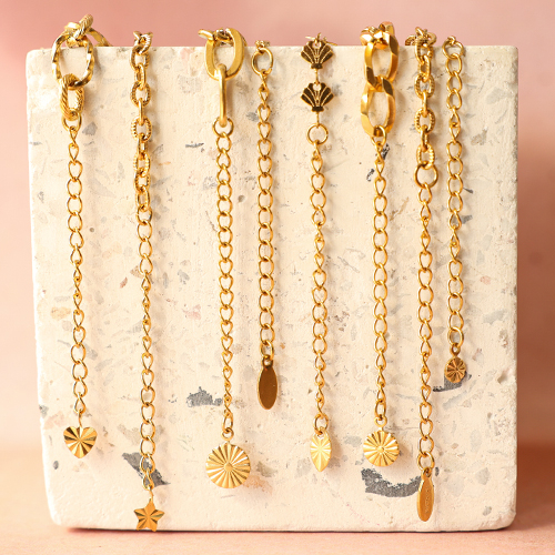 Diese hochwertigen Verlängerungskettchen aus Edelstahl sorgen nicht nur für Flexibilität in der Länge, sondern setzen mit einem kleinen Herz, Stern oder Blümchen am Ende einen stilvollen Akzent. Ideal für Armbänder und Halsketten, bei denen das Detail zählt.