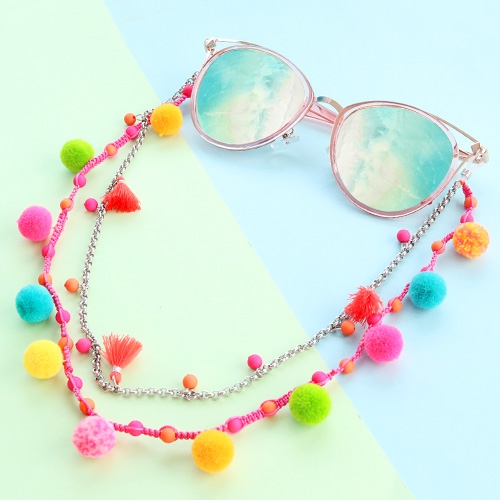 In diese Pompoms werden Sie sich sicher verlieben. Wenn nicht durch die Form, dann sicher durch die bunten Farben! Auch die Vielseitigkeit der Anhänger macht süchtig. Wie schön ist es aus diesen Pompoms zum Beispiel eine Sonnenbrillen Kordel zu machen? Wählen Sie Sommer Farben aus und kombinieren die Pompom Anhänger mit andern hübschen Sommer Anhängern wie Quasten. Mehr Sommer geht nicht! Aber auch Armbänder und Fussketten sind ein Fest mit den Pompom Anhängern. Verwenden Sie zum Beispiel Jasseron um die Pompom Anhänger zu befestigen oder wählen Sie DQ Leder. Sie können ganz dünnes DQ Leder wählen, dann fallen die Pompom Anhänger mehr auf oder Sie wählen geflochtenes DQ Leder. Hängen hier ein Statement Pompom Anhänger dran mit eventuell einem kleinen DQ Metall Anhänger und Sie sind absolut Sommertaulich!