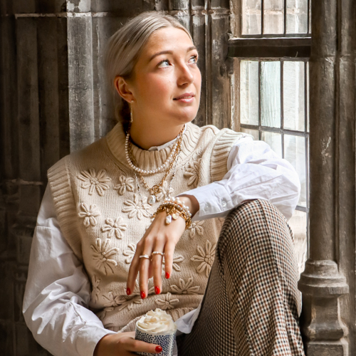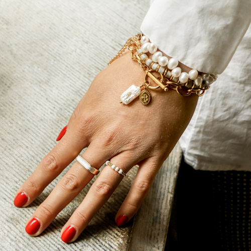 „Poetisch-traditionell-klassisch“ steht für einen weiblichen, romantischen Stil mit klassischer Note. Zu diesem Trend passen sehr gut z. B. Süßwasserperlen, Gliederketten, Kristallglas und Zirkonia. Nicht fehlen dürfen außerdem Ringe, eng anliegende Choker und lange Ketten.