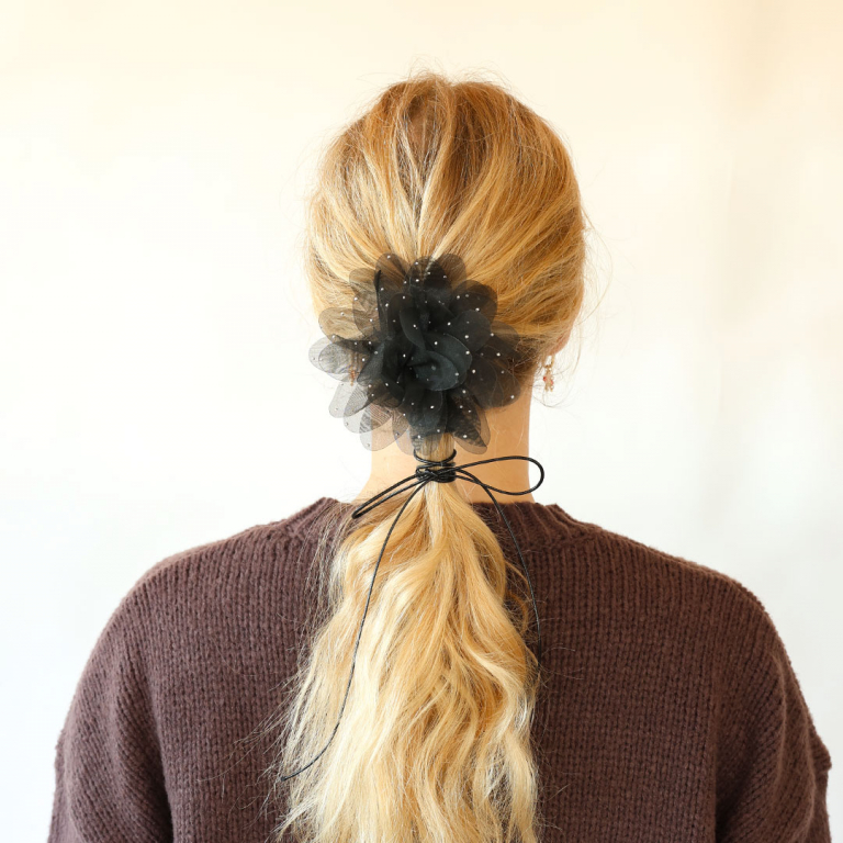 Blumen Halskette Organza mit Strass Black-silver