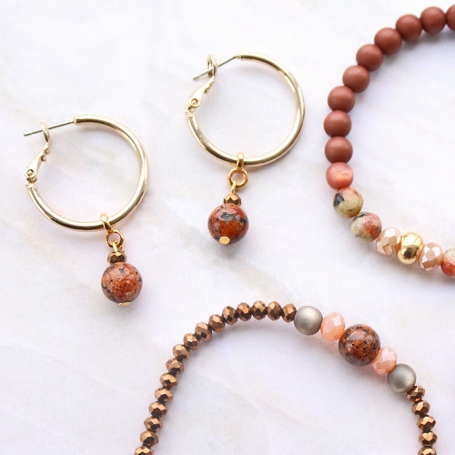 Kaufen Sie unsere Kollektion preislich günstige Naturstein Perlen jetzt und machen den schönsten Schmuck! Wir haben verschiedene Armbänder und Ohrringe gemacht mit diesen prachtvollen Perlen und hier lesen Sie, was Sie dafür benötigen…Kombinieren Sie Naturstein Perlen mit DQ Metall Ohrringen und Zwischenstücken für einen überraschenden Kontrast. Verwenden Sie auch DQ Metall Perlen um Armbänder zu machen und wechseln die Naturstein Perlen ab mit Acryl Perlen und Facett Perlen. Zum Abschluss können Sie Ihren Schmuck noch dekorieren mit zum Beispiel Quasten für einen verspielten Effekt. Viel Erfolg!