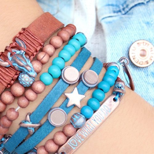 Dieser schöner Schmuck mit hippem Natur Look und blauen Akzenten sind absolut top! Dieser hübsche Stil ist eine schöne Abwechselung für geschmackvolle Kollektionen. Bei diesem Schmuck sind die Perlen, Anhänger und Zubehör aus Kupfer blue patina die Eye-Catcher. Wie Sie sehen, sind diese Artikel absolut für die kommende Saison. Kombiniert mit natürlichen Produkten z.B. Leder und Holz Perlen kommt das DQ Metall absolut zu seinem Recht. Super Artikel, mit dem Sie viele schöne Schmuckstücke entwerfen können.