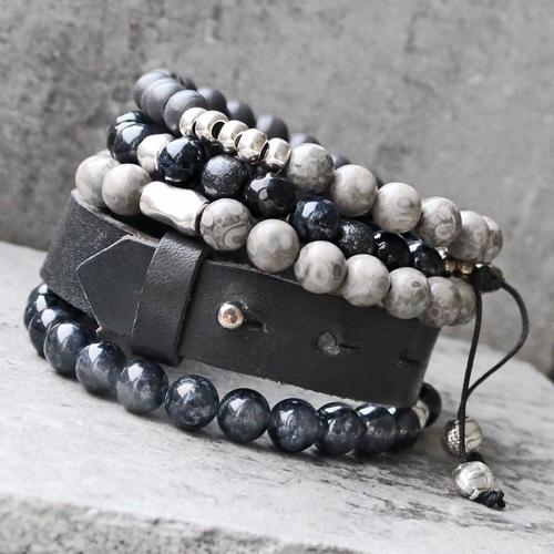 Mach super Winter Schmuck für Männer mit u.a. Naturstein Perlen, DQ Metall und Leder.