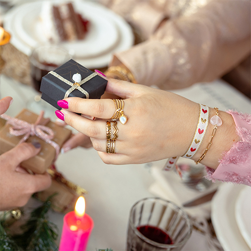 Schmuckband mit Text Herzen Pale pink-gold red
